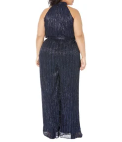 Adrianna Papell Crinkle Metallic Halter Neck Blouson Jumpsuit