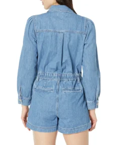 Madewell Long Sleeve Elastic Waist Denim Romper In Rushland Wash