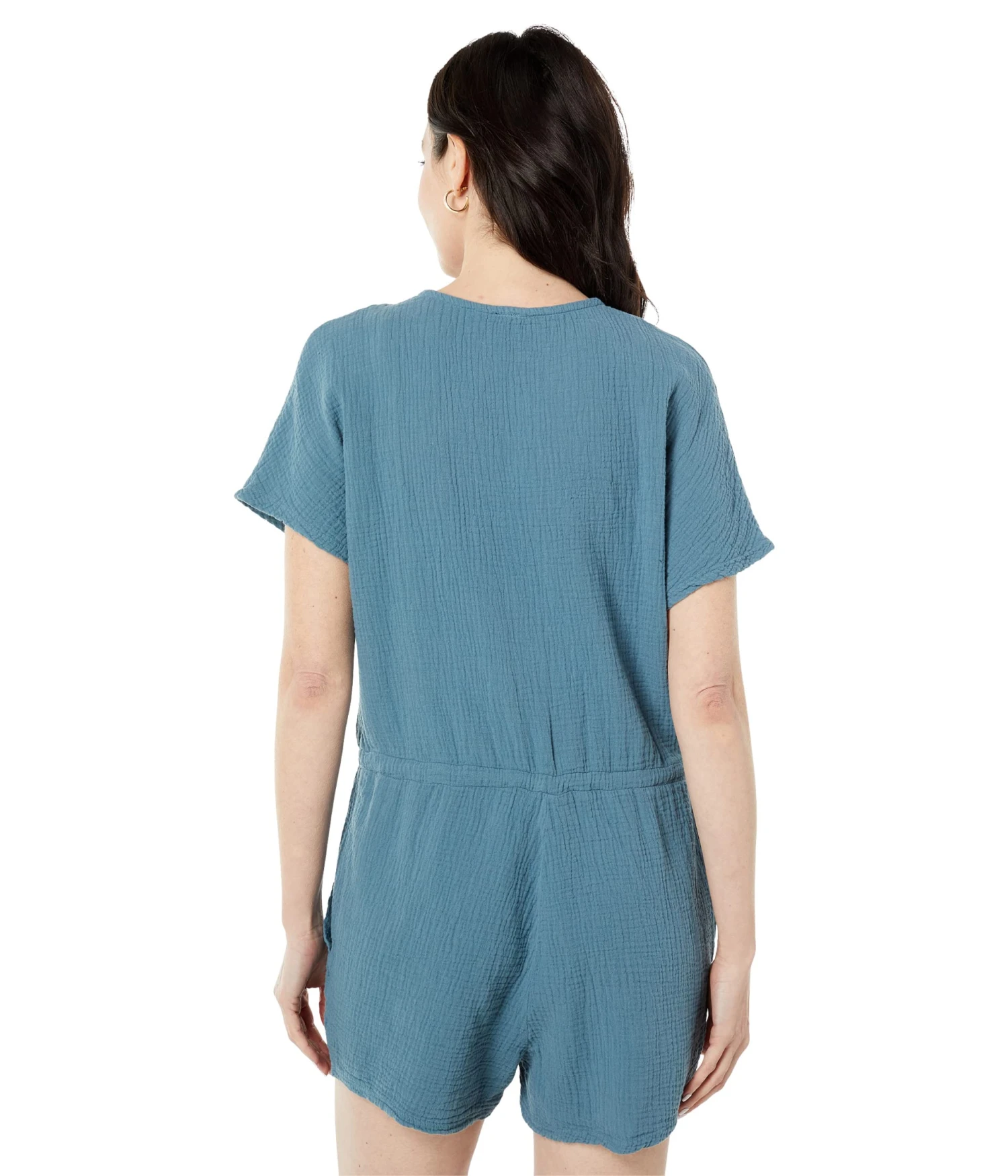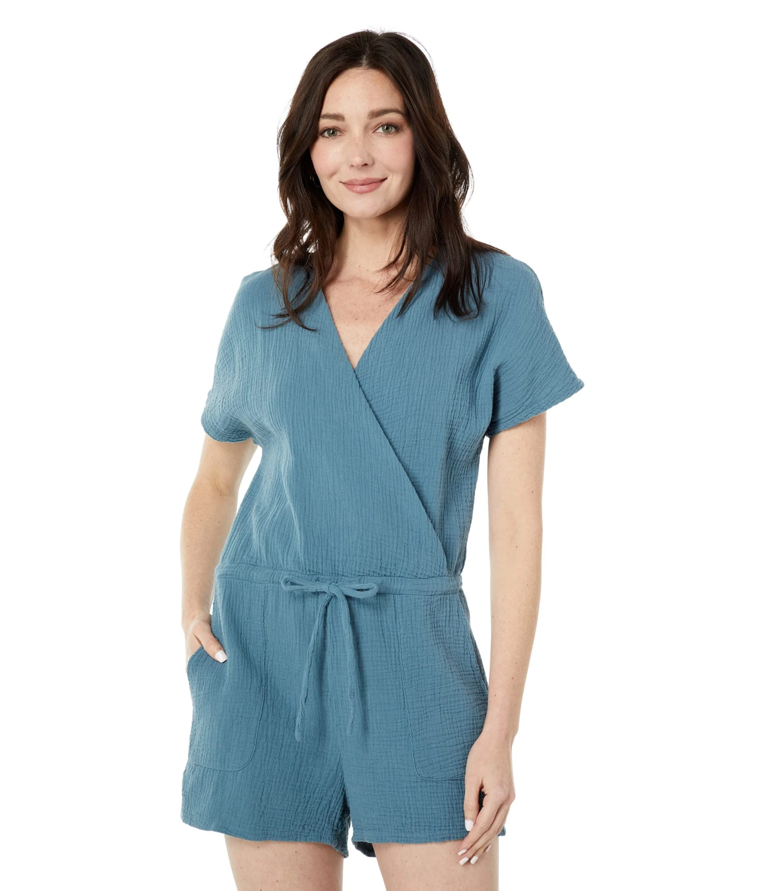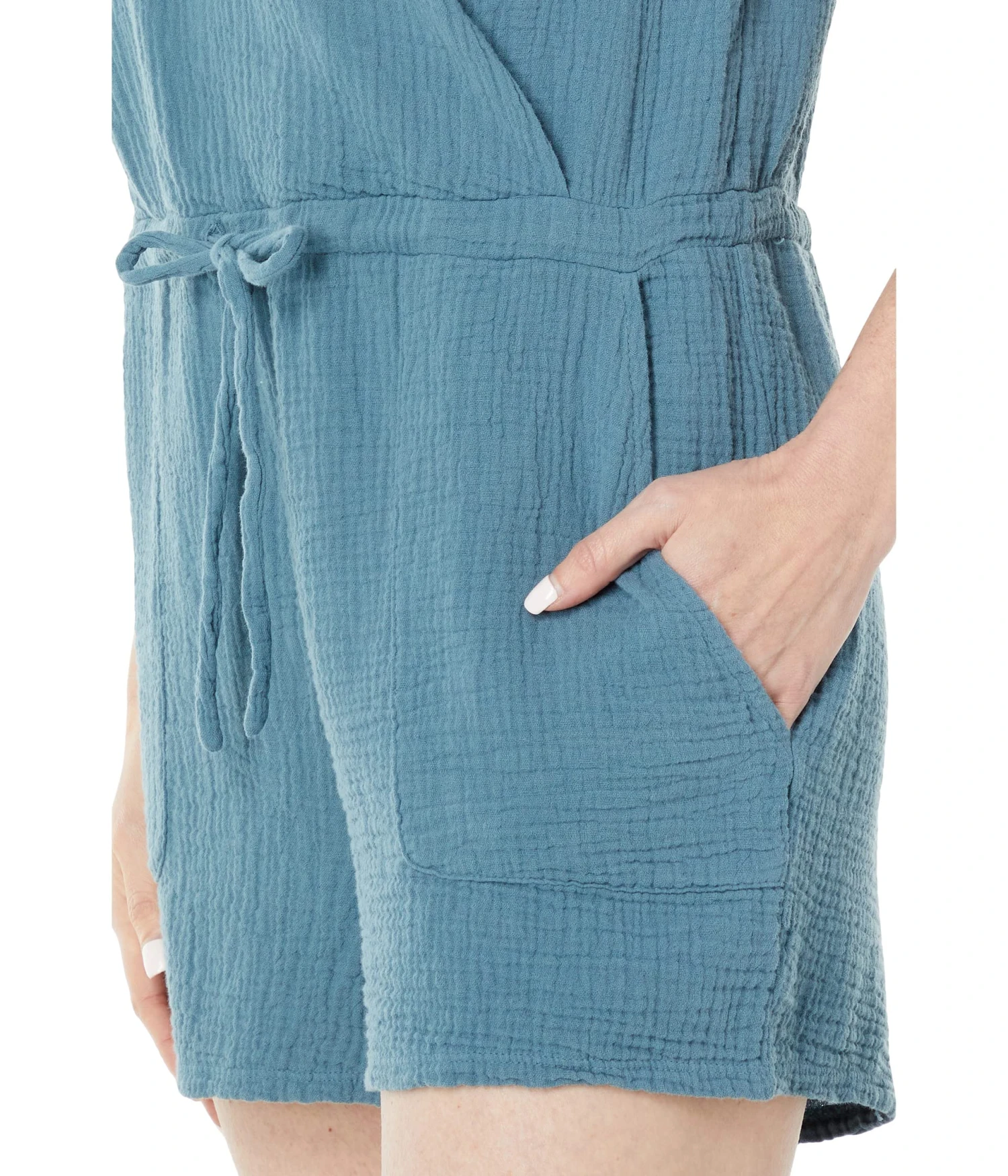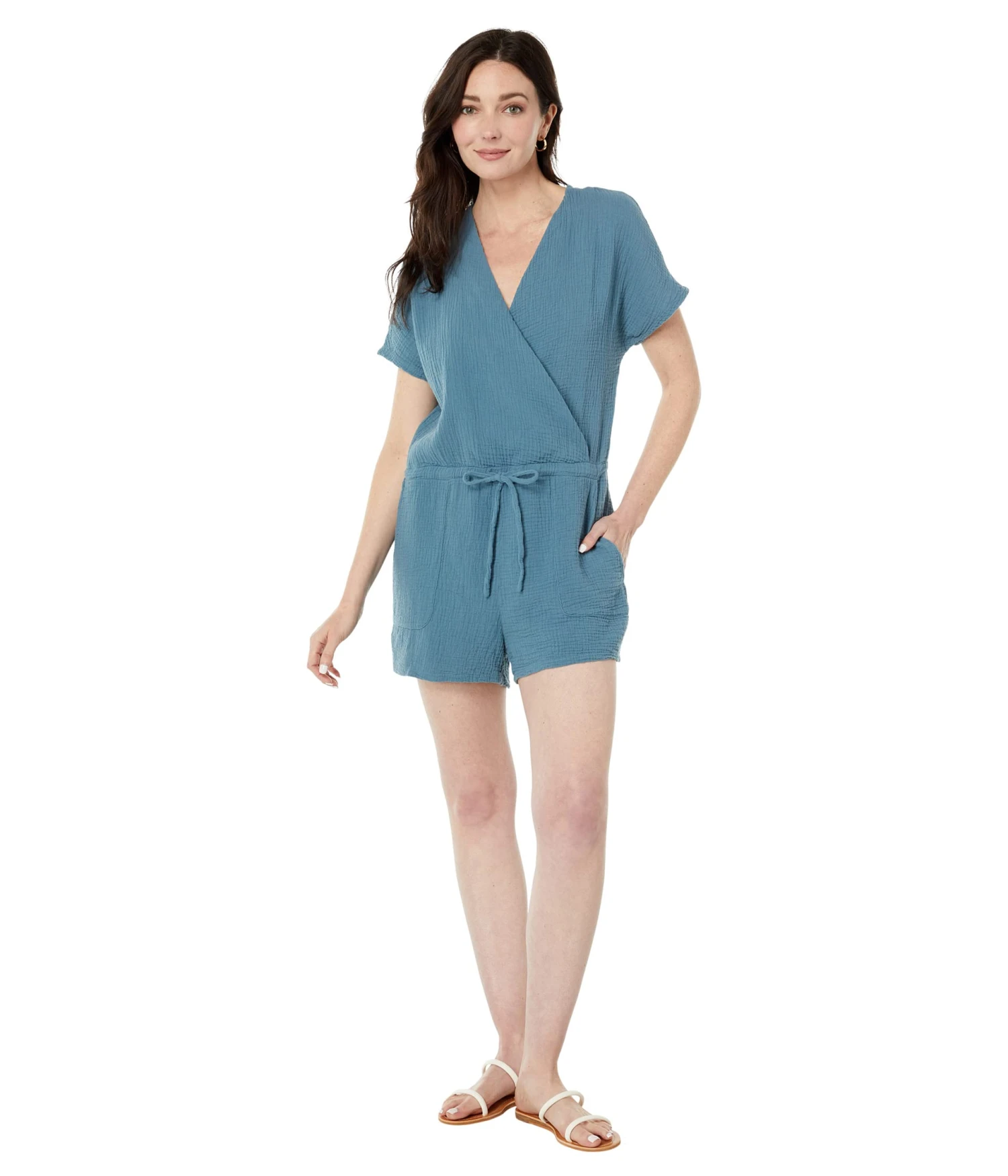 - Make a statement with your classy look wearing the bobi™ Los Angeles Drawstring Surplice Romper in Beach Gauze.