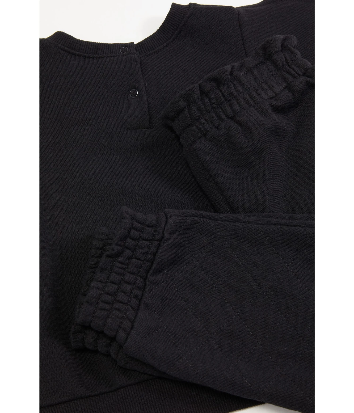 - Long sleeves with ribbed cuffs.