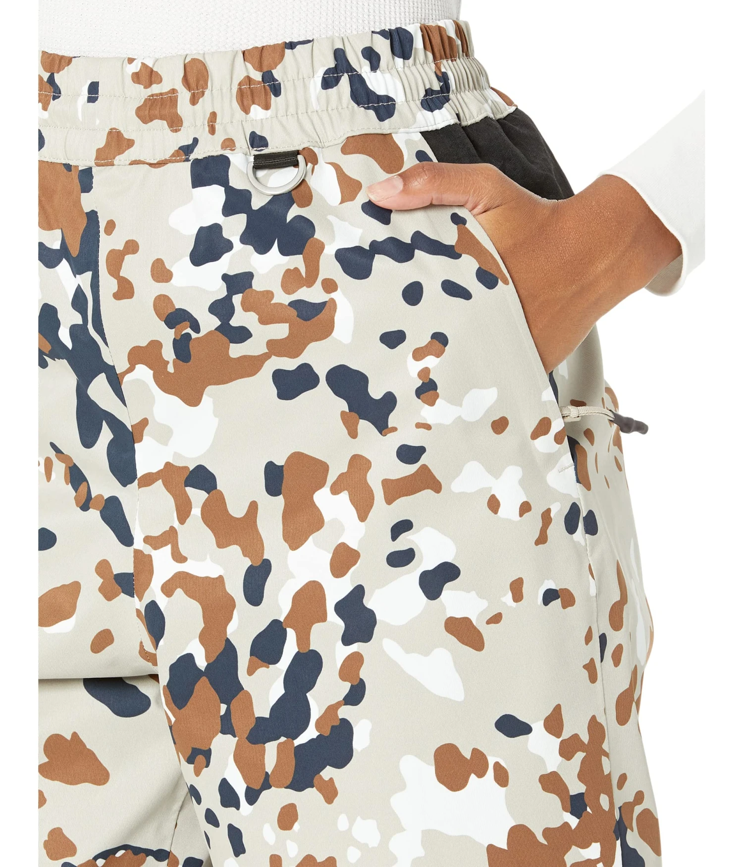 - Elasticized waist with D-ring eyelet.