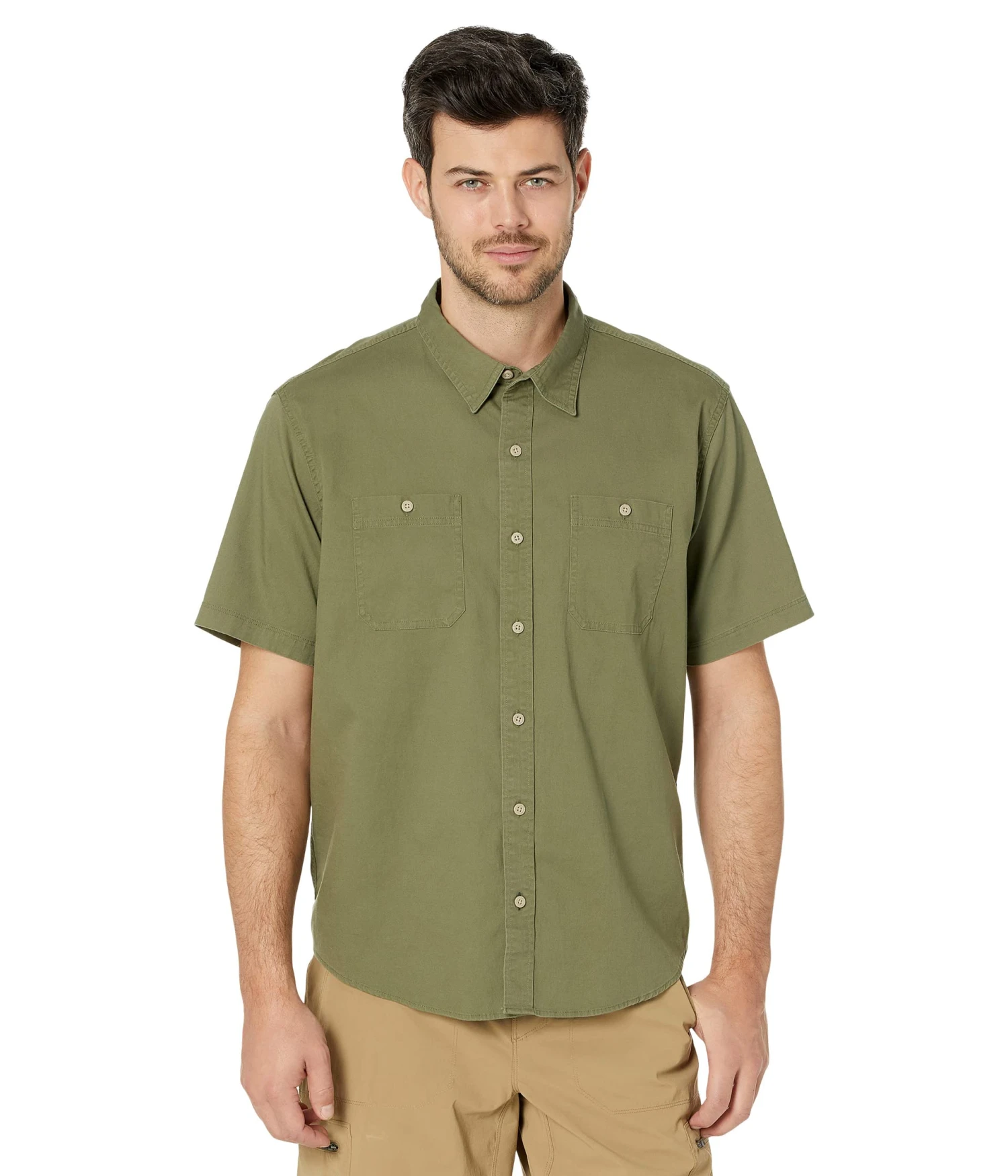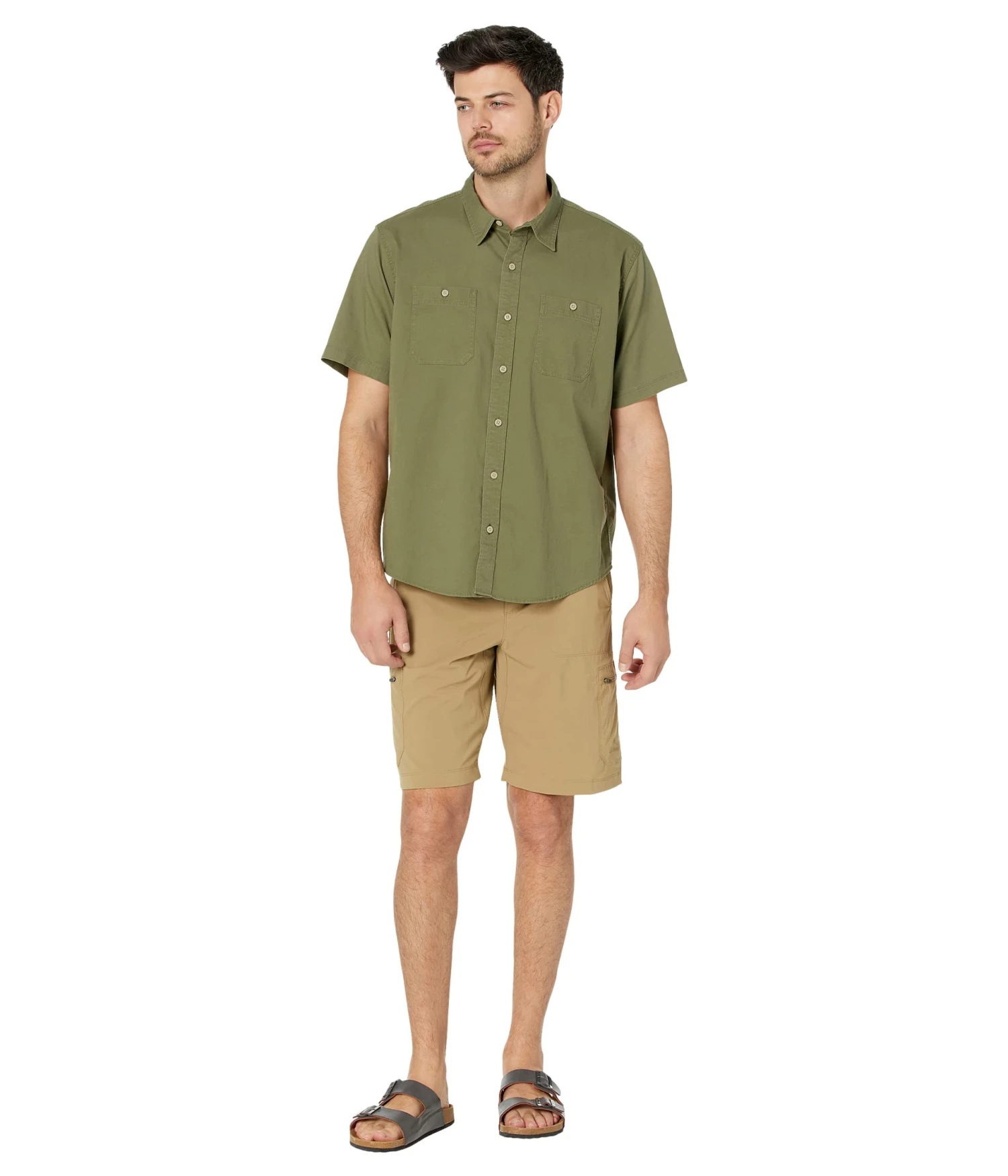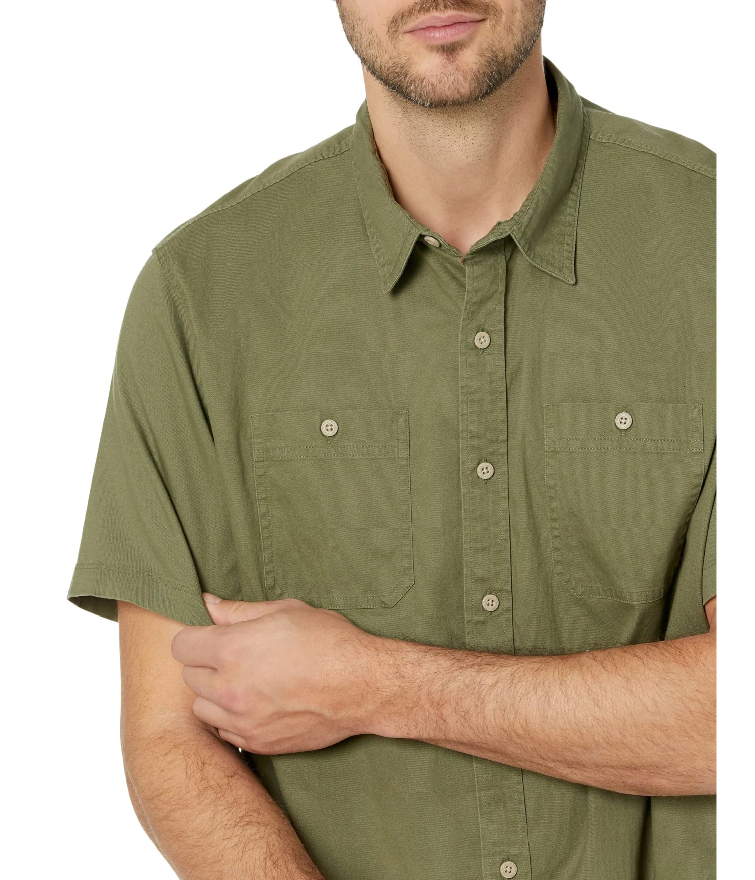 - Two chest pockets with button-through closures.