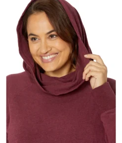 - Oversized adjustable cowl neckline and long raglan sleeves with ribbed cuffs and thumbholes.