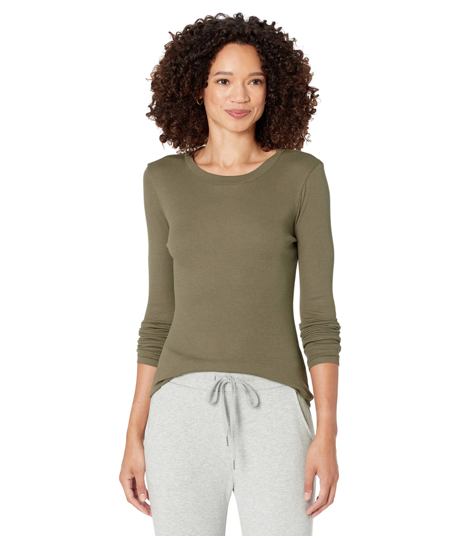 - The Madewell® Fine Ribbed Crewneck Long-Sleeve Tee looks chic and offers comfort. It pairs well with your different bottom styles.