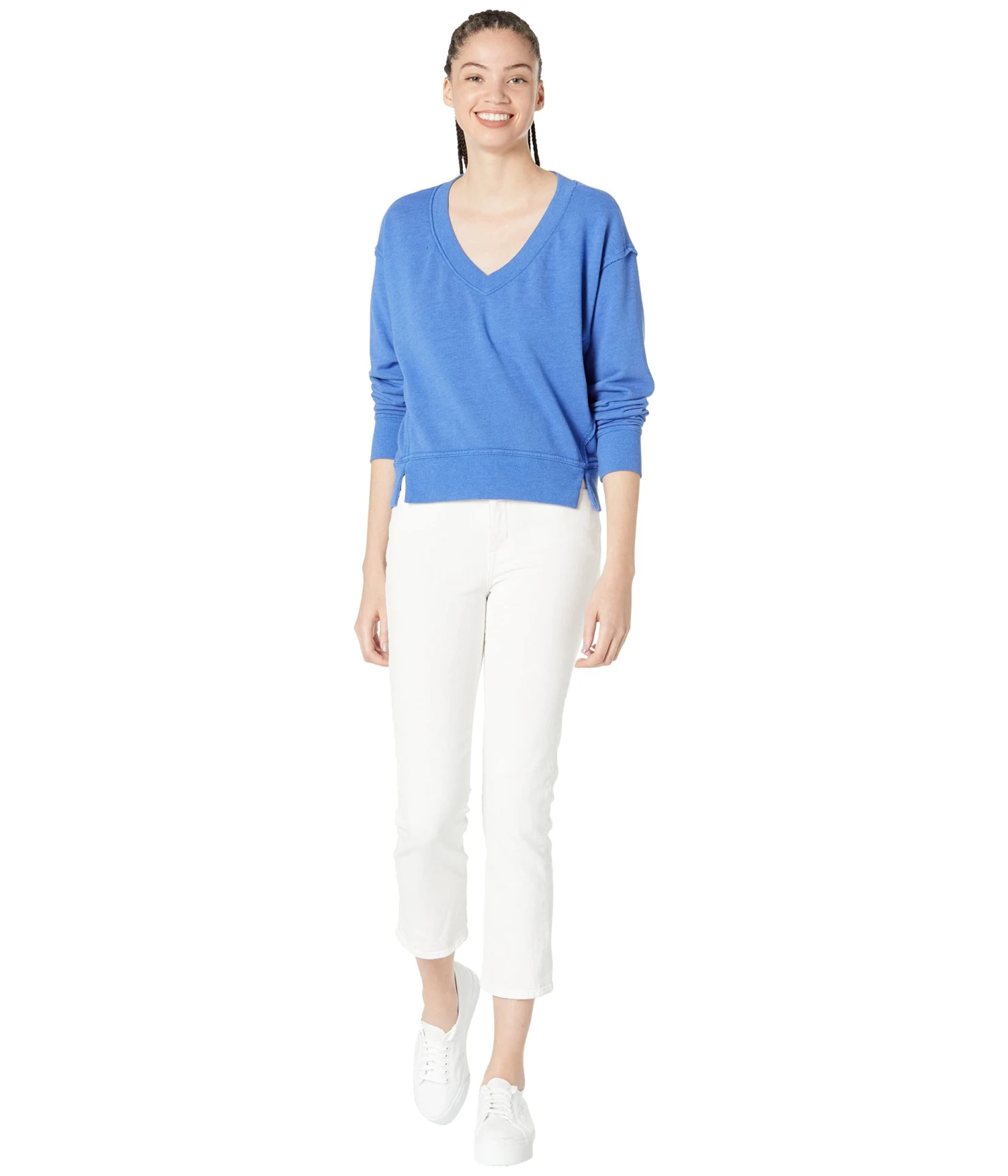 - Elevate your sweatshirt styling in the Michael Stars™ Camila V-Neck Crop Sweatshirt in Hermosa French Terry.