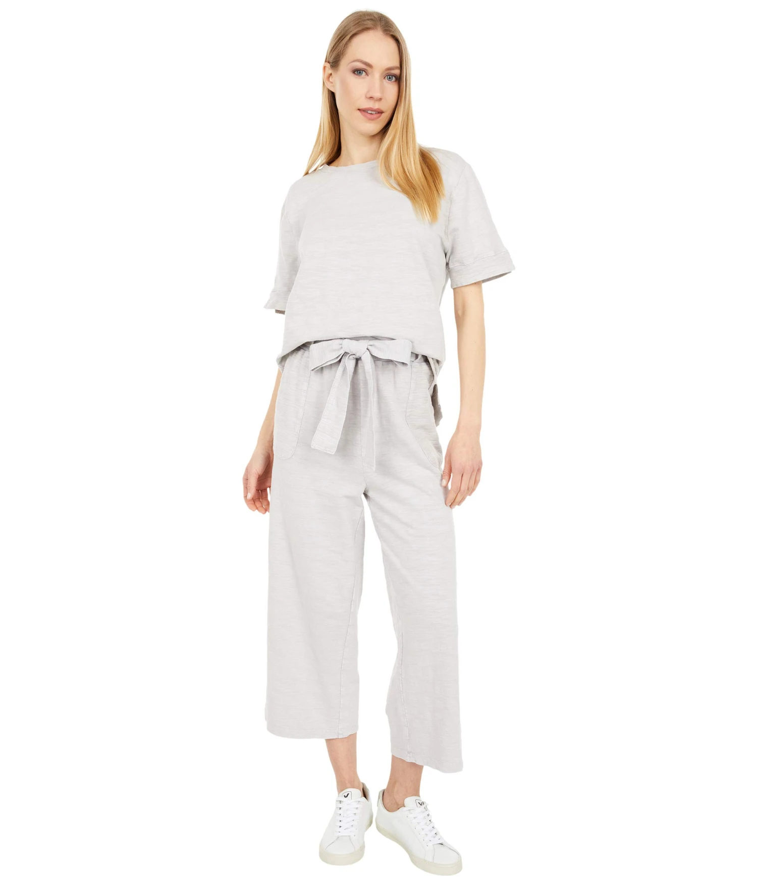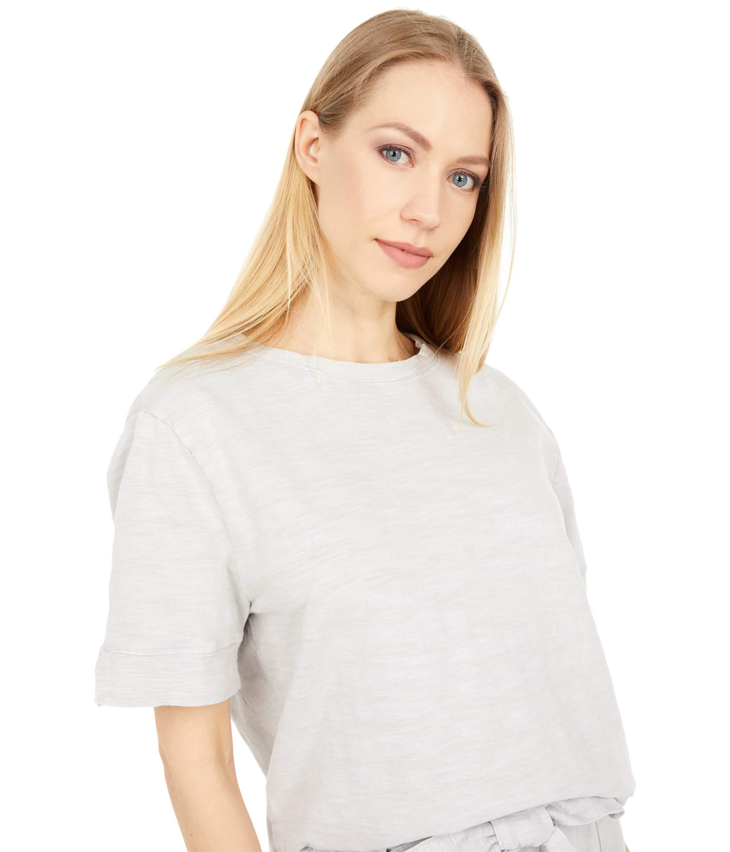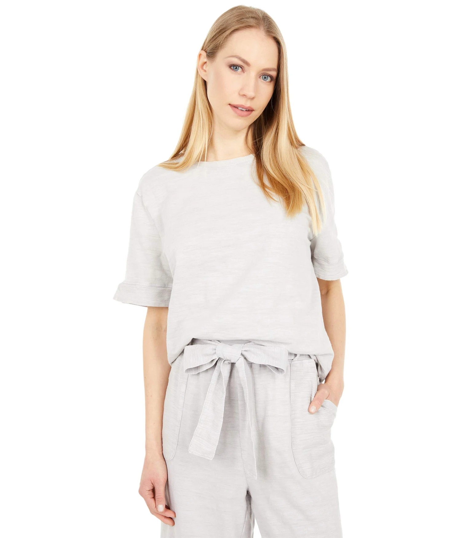 - Grab a comfortable basic piece with the Mod-o-doc™ Washed Shadow Stripe French Terry Short Sleeve Open Crew Neck Top. This cotton T-shirt is crafted with a crew neckline, banded V-vented short sleeves and finished with a high-low, vented side, raw hemline giving it a vintage finish and versatility when styling.