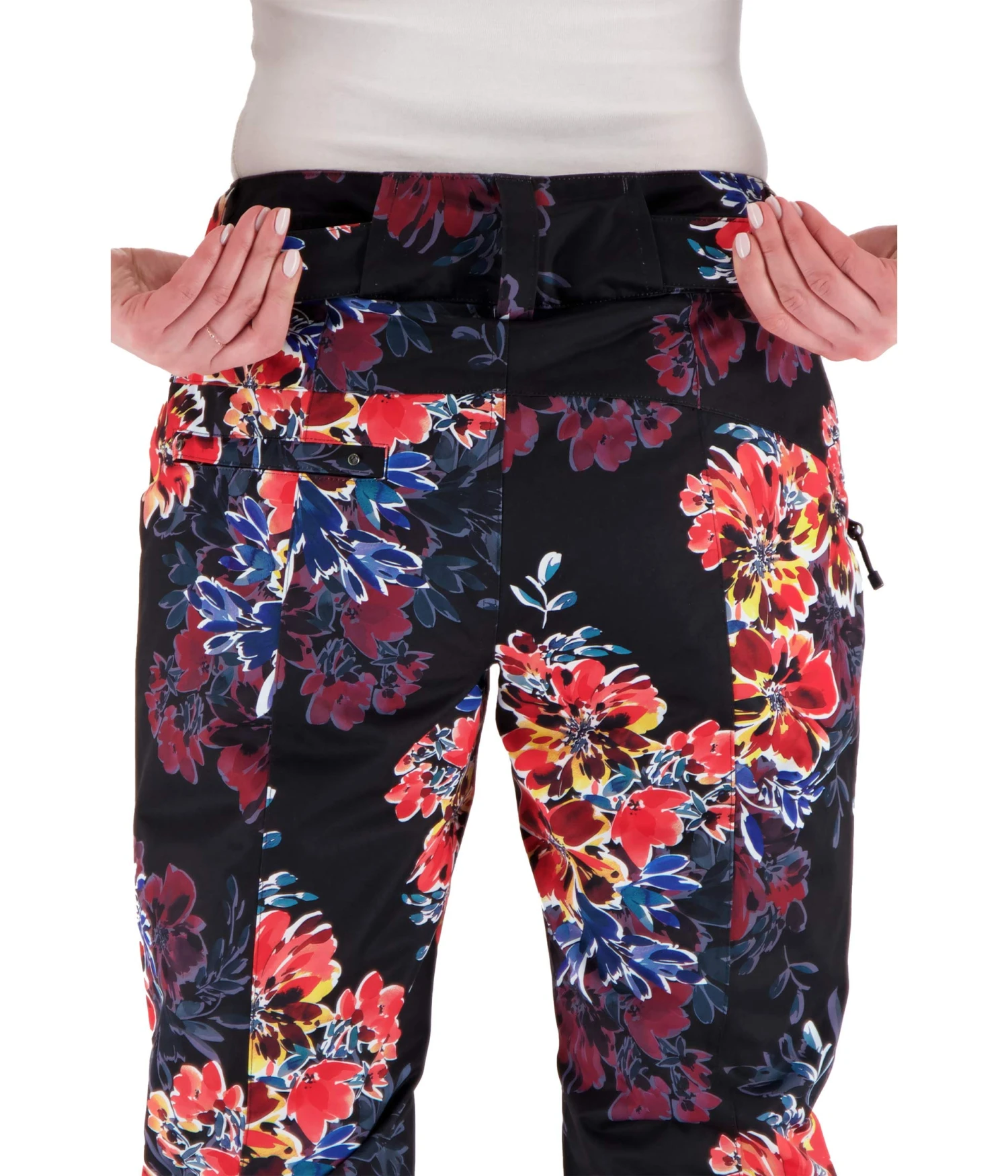 Zipper seat pockets. - Water-resistant powder cuffs with gripper elastic.