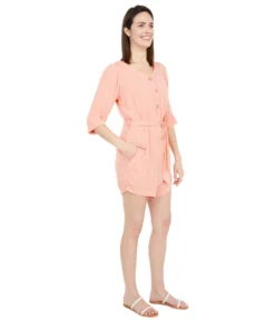 - Half-sleeve V-neck design with a button down frontal packet closure.