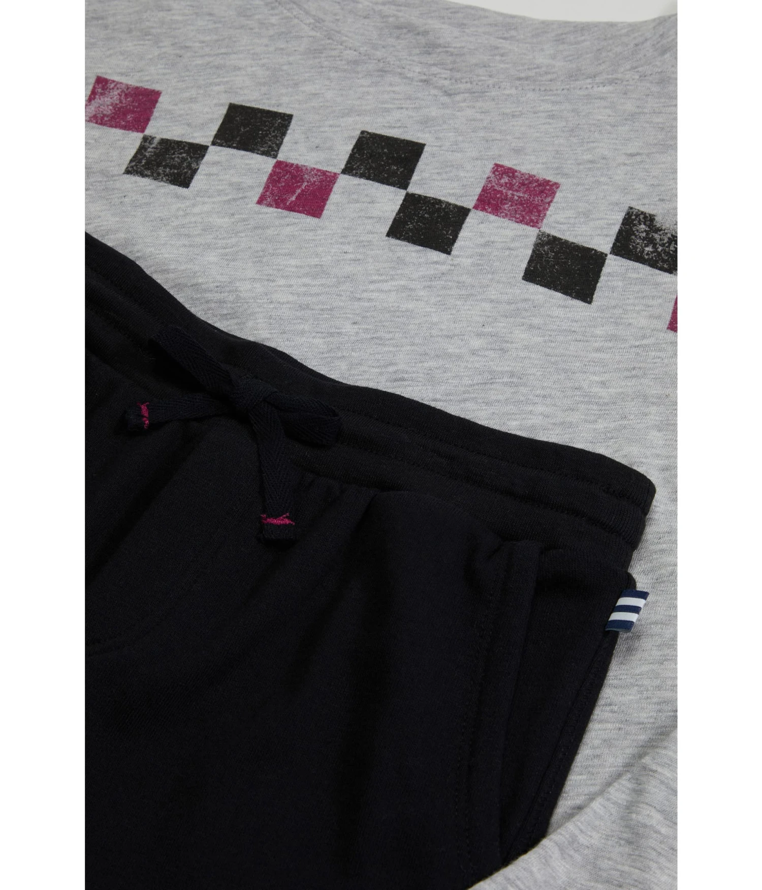 - Bottoms with an elasticized waistband with a drawstring closure.