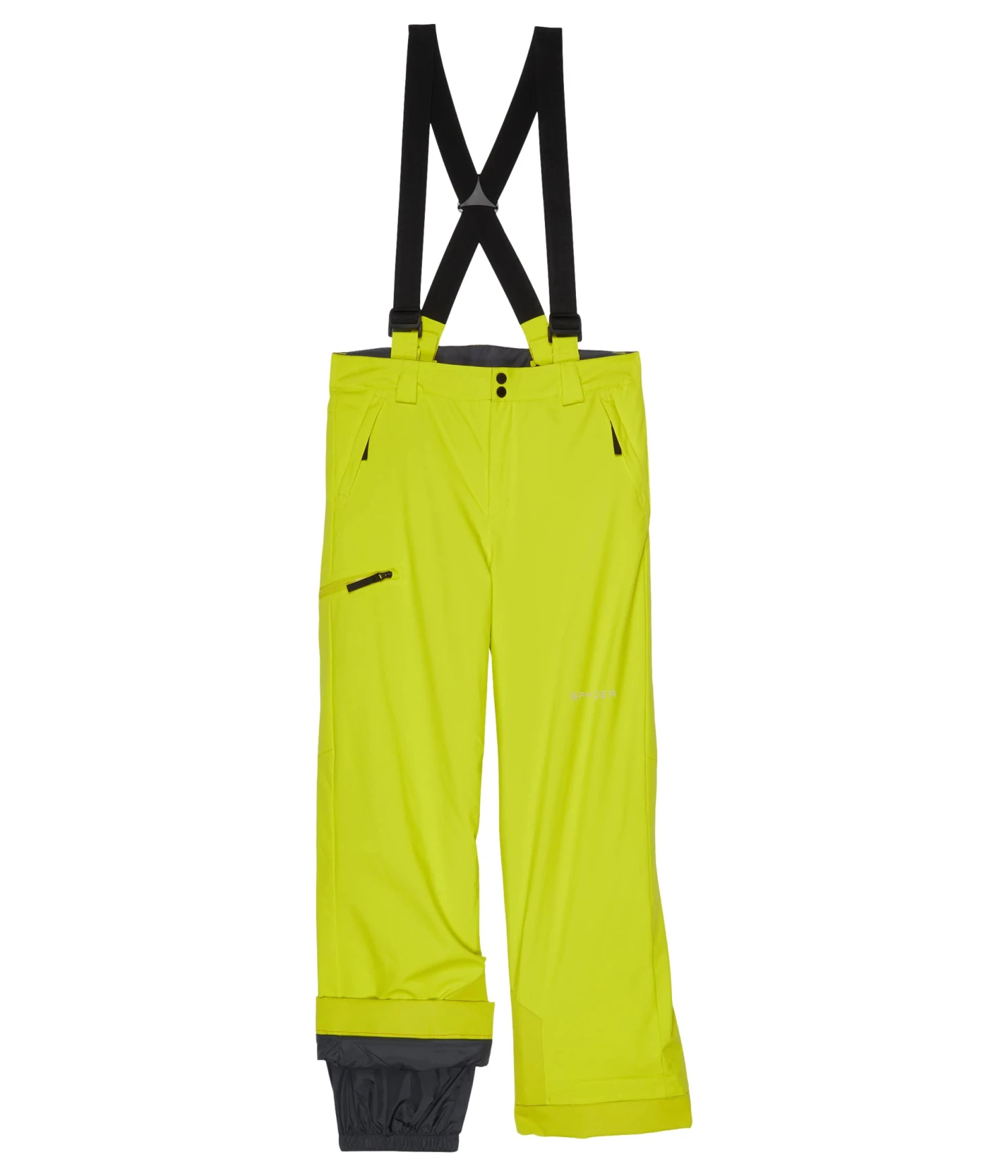 - Versatile snow pants feature detachable suspenders with adjustable slider tabs for a personalized fit. Constructed with a belt loop waistband, zip-fly and button closure, zippered hand pockets, and asymmetrical thigh pocket with a zip closure.