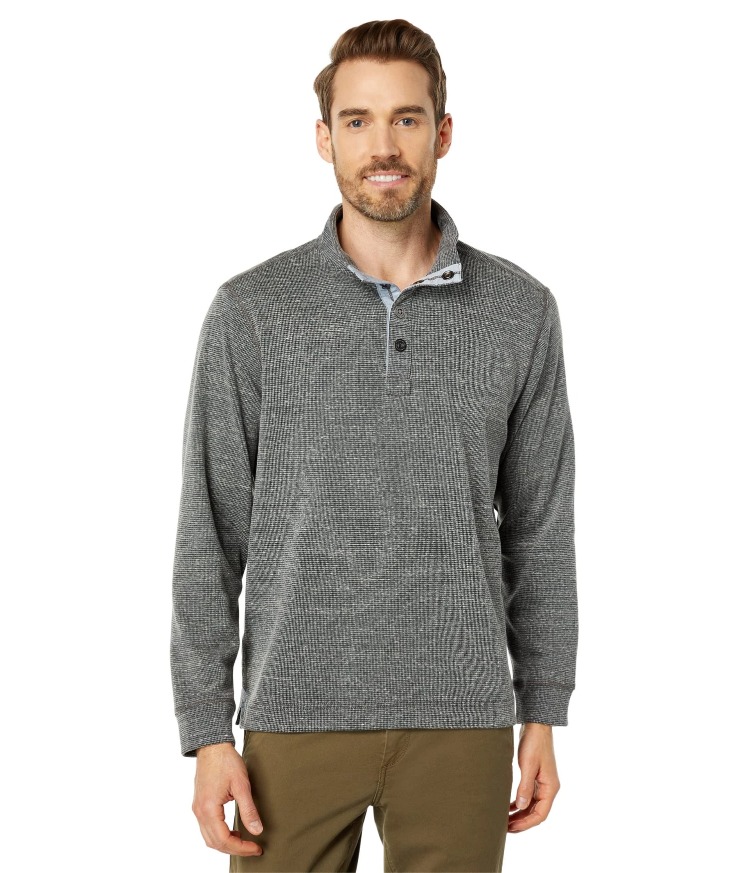 - Enjoy a light and comfy feel all day in the Tommy Bahama® Salt Point Snap Mock sweater.