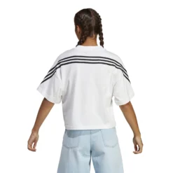 - Crewneck, short sleeve T-shirt with cropped hemline.